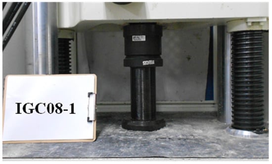 As seen in Figure 5, if the compressive strength of the specimen with the insulation material reaches to 10 MPa, the content of the insulation material mixed with perlite is about 8%. The appropriate perlite ratios were 8%, 15%, 20%, and 25%, and the dimensional was ϕ10 cm × 20 cm. Each of the insulation material cylinders was wrapped with additional 1-layer and 2-layer CFRP composite material. For each experimental parameter of the perlite additive, three insulation material cylinders were made. The three cylinders without CFRP were used as the reference (benchmark). A total of 36 insulation material cylinders were tested; the controlled variables of the cylinders are the perlite ratio, and the number of layers of CFRP, as shown in Table 5. The notation of the specimen showed as followings. The first letter “P” stood for perlite, the following number stood for the percent ratio of the perlite; the second letter “C” stood for the CFRP confinement, and the following number was the amounts of the layers of CFRP composite material.