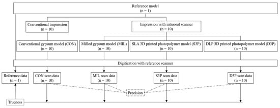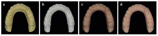 - Kim, S.Y.; Lee, S.H.; Cho, S.K.; Jeong, C.M.; Jeon, Y.C.; Yun, M.J.; Huh, J.B. Comparison of the accuracy of digitally fabricated polyurethane model and conventional gypsum model. J. Adv. Prosthodont. 2014, 6, 1–7. [Google Scholar] [CrossRef][Green Version]