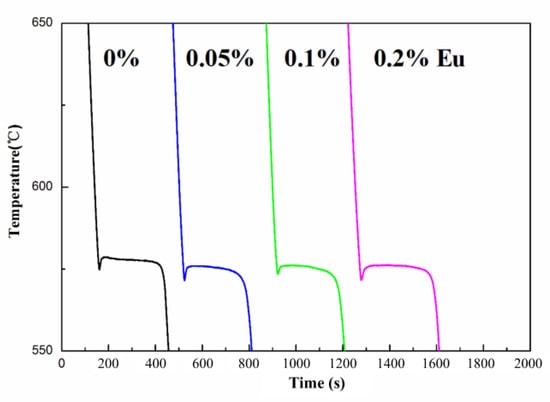 Effect of Eu content on the cooling curves of the HP Al–16Si alloy.