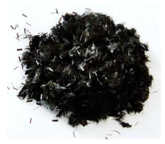 The VINNAPAS®5044N redispersible emulsion powder produced by the Wacker Company of Germany was used. Table 1 and Figure 2 show the main performance indexes and appearances, respectively. Table 2 and Figure 3 show the main properties and the appearance of PAN (polyacrylonitrile)-based short-cut carbon fibers, respectively. These data were obtained from the manufacturer.