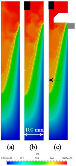Distribution of temperature in sump. (a) Conventional casting, (b) UST HT casting, (c) UST FRHT casting.