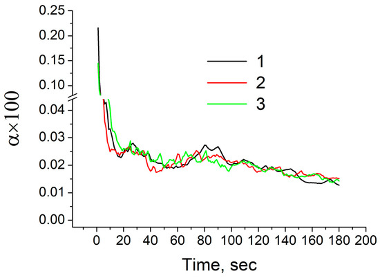 Time variation of dimensionless volume of mushy zone. 1: conventional casting; 2: UST HT casting; 3: UST FRHT casting.