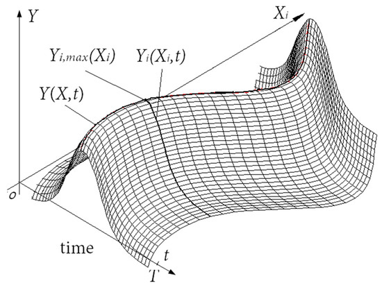 In Figure 3, () is the output response of the ith input sample in the time domain [0,T] and is the maximum of () in the time domain. When denotes the set comprising the maximum output responses corresponding to all input samples, the fitted extremum response curve is obtained, as follows:
