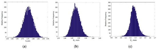 The DGRENN models, instead of the FE models, were simulated 104 times using the MC method in order to complete the dynamic probabilistic analysis of the three objects (disk, blade and casing) and then to acquire the creep deformations of objects. The histograms of creep deformations are shown in Figure 10 and the distribution features of Yd, Yb and Yc are displayed in Table 4.