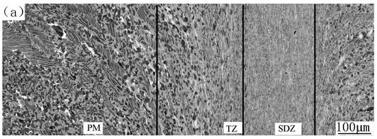 Microstructure evolution from PM to SDZ along axial direction of the CJ.