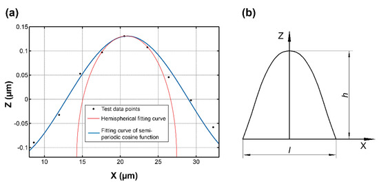 (a) Fitting results of measured data points using different fitting methods. (b) Vertical section image of a single asperity.
