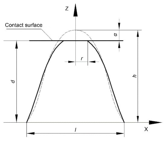From the above analysis, the geometry of a single asperity of the simulated rough surface was determined. The geometric dimensions can be defined as: