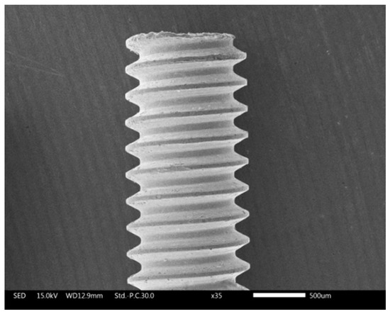 SEM (scanning electron microscope) image of the tube electrode with helical structure.