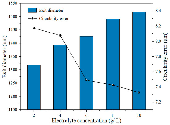 Variation of exit diameter and circularity error with electrolyte concentration in electrochemical reaming.