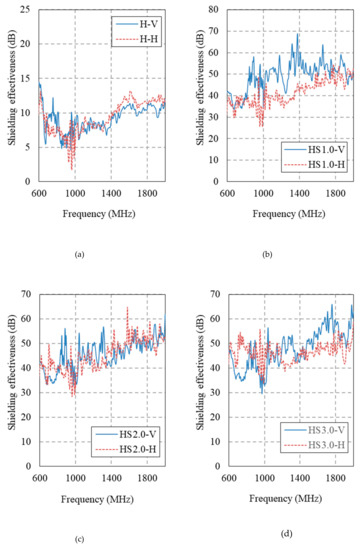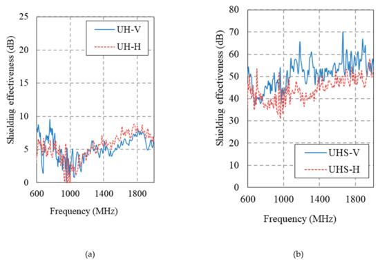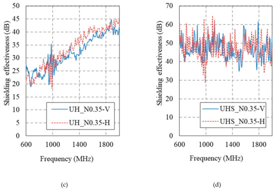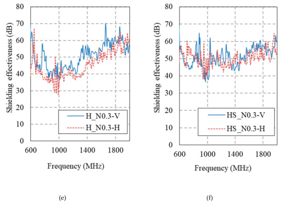 Figure 14 and Figure 15 show the electromagnetic shielding effectiveness of the HPFRCC measured by conducting an SE test in accordance with MIL-STD-188-125. Table 6 gives a summary of the SE results at 1 GHz.