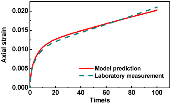 Simulations of uniaxial static creep tests were then conducted on the prepared DE models. The results are shown in Figure 16.