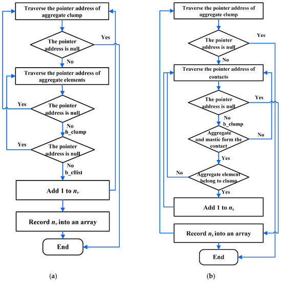 Procedure for quantifying the discrete element number of aggregates: (a) quantifying the number of aggregate surfaces; (b) quantifying the number that makes up aggregates.