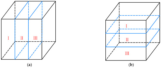 Partitioning within asphalt mixture specimen: (a) partitioning in the horizontal direction; (b) partitioning in the vertical direction.