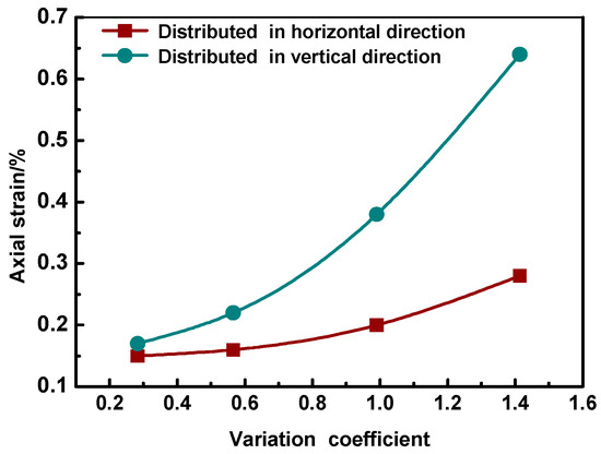 As shown in Figure 20 and Table 5, axial deformation of the specimens increased as the coefficient of variation of aggregate distribution increased using both partition methods. Aggregate distribution had a significant impact on the deformation performance of the asphalt mixtures. Non-uniformity in the vertical direction had much more impact on the deformation of the specimen than that in the horizontal direction, as shown in Figure 20.