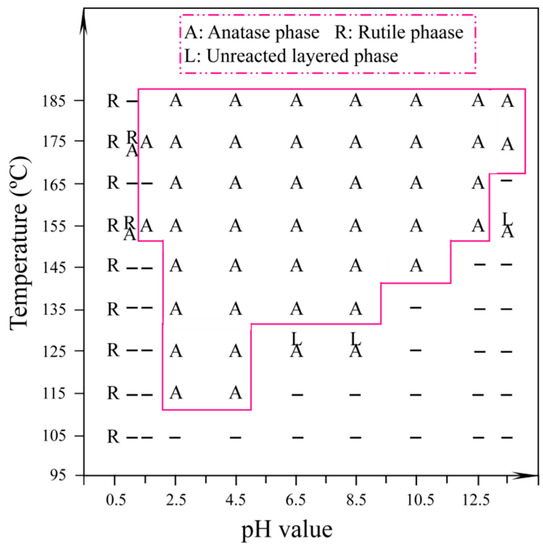 Changes in the crystal form of titanium dioxide with temperature and pH value.