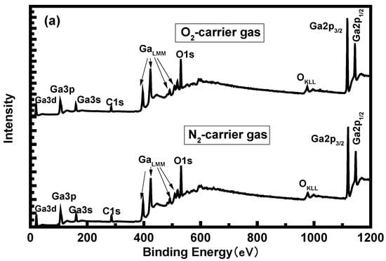 The following are available online at https://www.mdpi.com/1996-1944/12/22/3670/s1, Figure S1: TEM images of the sample grown with air as the carrier gas. (1) Cross-sectional α-Ga2O3/α-Al2O3 interface, (2) diffraction spots of α-Ga2O3/α-Al2O3, Figure S2: TEM images of the sample grown with N2 as the carrier gas. (1) Cross-sectional α-Ga2O3/α-Al2O3 interface, (2) diffraction spots of α-Ga2O3/α-Al2O3, Figure S3: X-ray photoelectron wide spectra for the α-Ga2O3 sample grown with air as the carrier gas, Figure S4: X-ray photoelectron wide spectra for the α-Ga2O3 sample grown with N2 as the carrier gas.