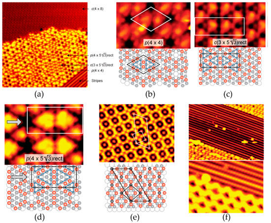 - Vestergaard, E.K.; Vang, R.T.; Knudsen, J.; Pedersen, T.M.; An, T.; Lægsgaard, E.; Stensgaard, I.; Hammer, B.; Besenbacher, F. Adsorbate-Induced Alloy Phase Separation: A Direct View by High-Pressure Scanning Tunneling Microscopy. Phys. Rev. Lett. 2005, 95, 126101. [Google Scholar] [CrossRef]