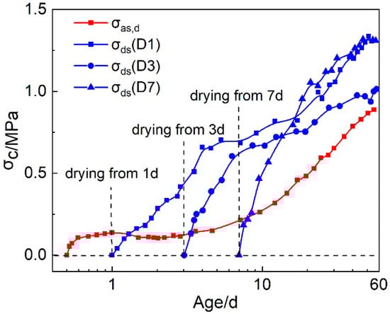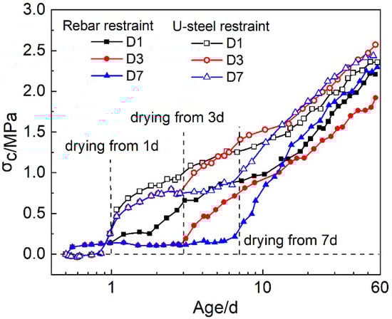 3.2.2. Restrained Stresses under Drying Conditions (D1, D3 and D7)