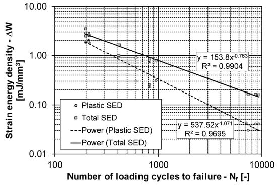 4.2. Prediction of Fatigue Life Using the Strain–Energy Density
