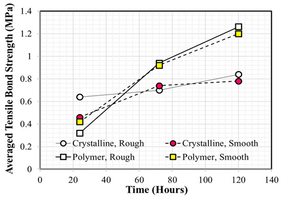 Average tensile bond strength values of crystalline and polymeric coatings (Redrawn using the data of Al-Kheetan et al. [26]).