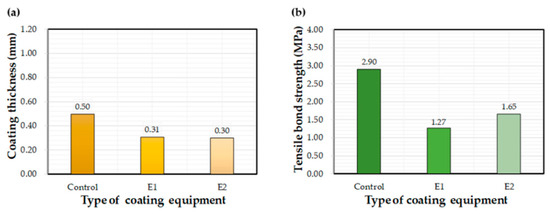 Effects of the selected coating equipment on (a) coating thickness and (b) bond strength.