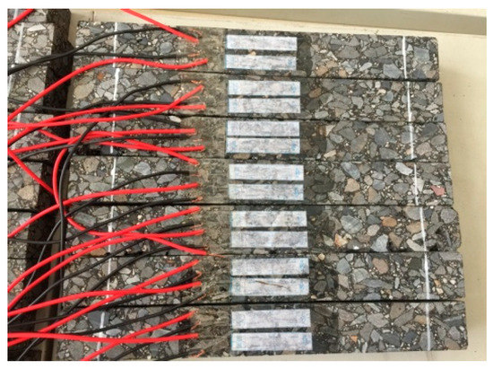 The Strategic Highway Research Program (SHRP) report provides a comprehensive evaluation and ranking of the degree of field simulations of different fatigue performance tests, feasibility of each of the test methods, feasibilities of the test results, and correlations with the test results. It is considered that the cyclic bending test can represent the actual stress state of asphalt pavements adequately, and the results can be directly applied to engineering design. Therefore, this paper uses the bending fatigue test for beams to evaluate the fatigue damage performance of the asphalt pavement. For each asphalt mixture, board specimens of dimensions 380 mm × 100 mm × 50 mm were formed according to the optimal asphalt ratio, and the compactness of the rut board was controlled at 98% of the Marshall compactness. Three beams from each group were tested simultaneously, as shown in Figure 4.