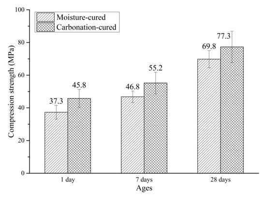 Compressive strength of carbonation-cured and moisture-cured samples.