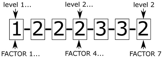 Coding of runs. The number enclosed in the rectangle represent the level and the number location represent the factor.