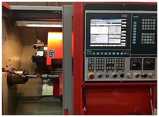 A surface roughness apparatus Tesa-Rougosurf-90 G (Switzerland) was used to measure the surface roughness values Ra, and Rq, where Ra is the arithmetic average of the absolute values of the roughness profile ordinates, and Rq is the root mean square average of the roughness profile ordinates. The used settings parameters for surface roughness measurements were: Cut of length of 0.8 mm, cut-off number of 4, measuring speed of 1 mm/s, and using an option of “curved measurement surface”. The test rig for measuring the surface roughness is shown in Figure 2. Regarding the material removal rates, these values are determined using the commonly known formulation based on the speed, feed rate, and depth of cut values. It should be stated that the same insert was used for the same cutting conditions at different cutting lengths.