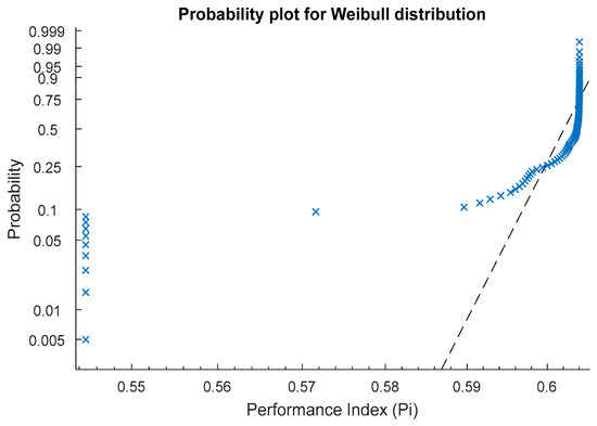 Probability distribution (Weibull) of the optimized Pi values.
