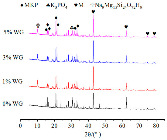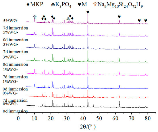 The effect of WG on the XRD patterns of MPC after 7 days of immersion.