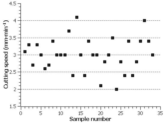 Cutting speed value of individual samples.