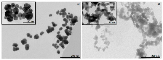 Furthermore, a previous study showed [66] that the pH value of the precursor solutions affects the AuNPs’ sizes, where lower pH values produce smaller AuNPs compared to higher pH values. This was confirmed by the obtained results, since AuNPs from the AuCl precursor solution (pH 2–3) were smaller, compared to AuNPs from the AuAc precursor with a higher pH value (pH 5–6).