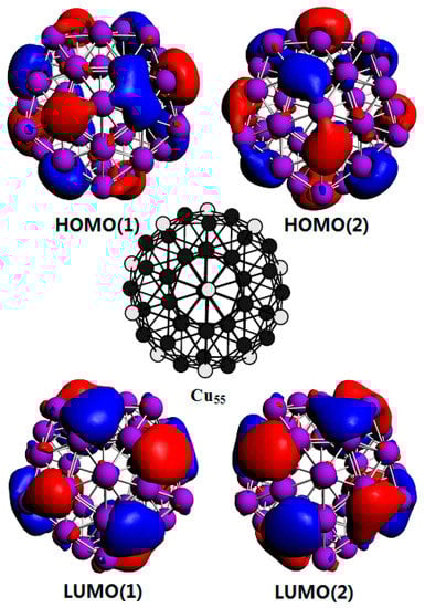 - Delley, B.; Ellis, D.E.; Freeman, A.J.; Baerends, E.J.; Post, D. Binding energy and electronic structure of small copper particles. Phys. Rev. B 1983, 27, 2132. [Google Scholar] [CrossRef]