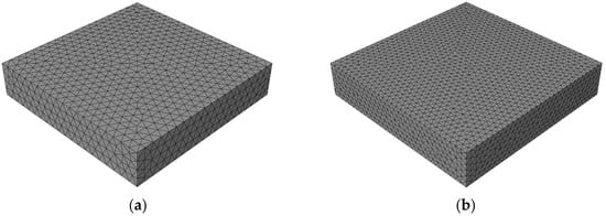 The mesh diagrams with different average element size: (a) 5 mm in Mesh I, (b) 3 mm in Mesh II.