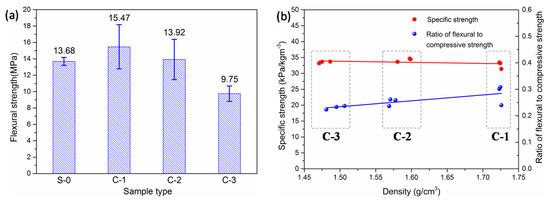 (a) Flexural strengths of LTCC. (b) Specific strength and ratio of flexural to compressive strength of LTCC with respect to density.