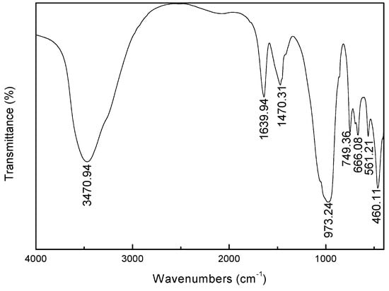 FTIR spectrum of synthesized zeolite X is shown in