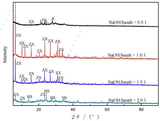 30]. Therefore, NaOH/basalt ratio plays a crucial role in the formation of the zeolites, which affects not only the degree of zeolite crystallinity but also the synthesized zeolite types.