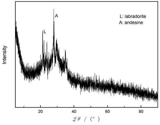 Figure 1a, basalt sample is an amorphous phase based on an aluminosilicate glass with minor amounts of crystalline phase substances, mainly labradorite (JCPDS NO. 43-1368) and andesine (JCPDS NO.79-1149). Furthermore, N