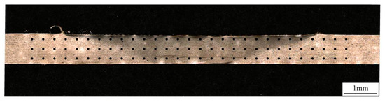 The hardness was measured using a Vickers hardness tester (SCTMC DHV-1000Z, Shanghai Optical Instrument Factory, Shanghai, China) with a 200 g load for 15 s. The measuring point distribution is shown in Figure 1, and the step length between measurements was 0.35 mm. Tensile tests were performed at room temperature under the ASTM-E8 standard, using a tensile velocity of 3 mm/min. The tensile strength value was taken as the average value of three samples produced with the same welding condition. After the tensile test, the fracture surface was analyzed using scanning electron microscopy (SEM; FEI Quanta 200, FEI, Eindhoven, Holland).