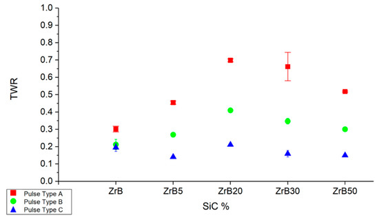 - Monteverde, F.; Silvestroni, L. Combined effects of WC and SiC on densification and thermo-mechanical stability of ZrB2ceramics. Mater. Des. 2016, 109, 396–407. [Google Scholar] [CrossRef]
