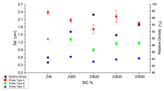 | Material | Pulse Type | Sa (μm) | Sz (μm) |
