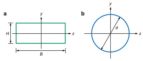 Model diagram for rectangular and circular sectional moment of inertia calculation. (a) Pulp fiber; (b) Danufil fiber.