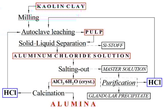 The technological scheme of the hydrochloric acid method for alumina production from kaolin clays is shown on Figure 1.