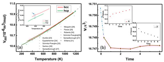 - Lu, X.G.; Selleby, M.; Sundman, B. Assessments of molar volume and thermal expansion for selected bcc, fcc and hcp metallic elements. Calphad-Comput. Coupling Ph. Diagr. Thermochem. 2005, 29, 68–89. [Google Scholar] [CrossRef]
