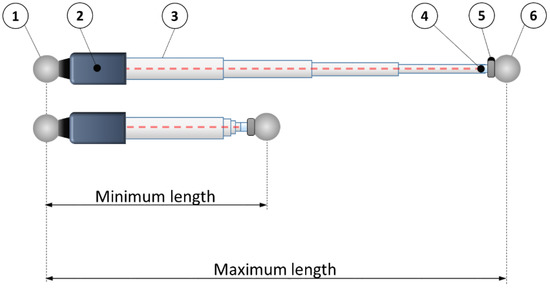 The calibration artefact has to materialize the calibration positions for a length measurement instrument. The instrument consists of a system that measures the distance between two spheres. One of the spheres is fixed to the instrument and the other is fixed to the machine tool, robot or coordinate measuring machine under verification. As it can be seen in Figure 1, the gauge is composed of a sphere (1) and a support (5) to hold the sphere fixed to the machine tool under verification (6), being both located at the edges of the artefact. Between both sides, there is an interferometer (2) to measure the different distances that will be materialized in the gauge. These different lengths are achieved with a telescopic system (3) that also assures the alignment of the interferometer and the retroreflector (6). The interferometer is located on the left side of the gauge closed to the fix sphere (1). The retroreflector will be located on the other side of the system close to the sphere fixed to the machine tool. The calibration artefact should be able to calibrate measurement instruments with a measurement range from 400 mm to 1600 mm (max. and min. in Figure 1). Once calibrated, the instrument will give the distance between the centers of the two spheres.