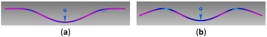 Results of the simulation of a simple bar (aluminum) with two supports following each two methods. (a) Simple bar supported at the Airy points; (b) simple bar supported at the Bessel points.