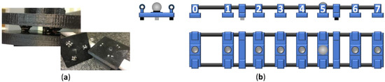 Therefore, this work presents the development of a reference artefact to calibrate extensible guidance systems used in machine tool and robot verification procedures. The reference artefact materializes several working positions and lengths with a fixed reference origin. The reference origin consists of a nest for a precision sphere, and the working positions include different nests with precision spheres and kinematic couplings. The mechanical repeatability of the reference artefact for the nests’ positioning in the different working locations is achieved with kinematic couplings configuration of spheres and cylinders. The design of the artefact will also compensate the errors associated with its deflections [9,10]. In [9], an analysis of the measured length of long artifacts is showed, and the use of tubes instead of solid bars is recommended to reduce the elongation due to self-loading. In [10], the author gives an estimation of the location of the supports to obtain parallel surfaces at the end of a bar (Airy points) and another option (Bessel points) to obtain the minimum change in length.