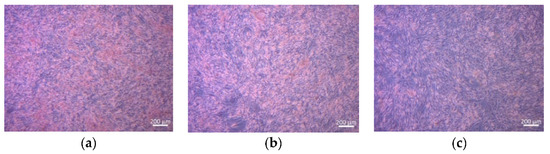 Light microscopy images of H&E-stained ST2 cells cultured with IDPs in CCM with different dilutions ((a) = 1%, (b) = 0.1%, and (c) = 0.01%) of tested material.