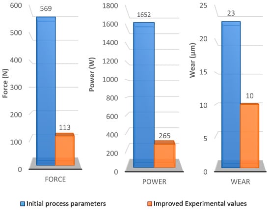 Figure 12 indicates an improvement from the initial process parameters when using the newly identified experimental values. An average improvement percentage above 50% is obtained in each of the evaluated responses. However, more ample work is required to establish predictive models for each of these responses. Future research will seek to develop these predictive models and estimate optimal parameters in the milling of AISI 1045 stainless steel using ceramic cutting tools.